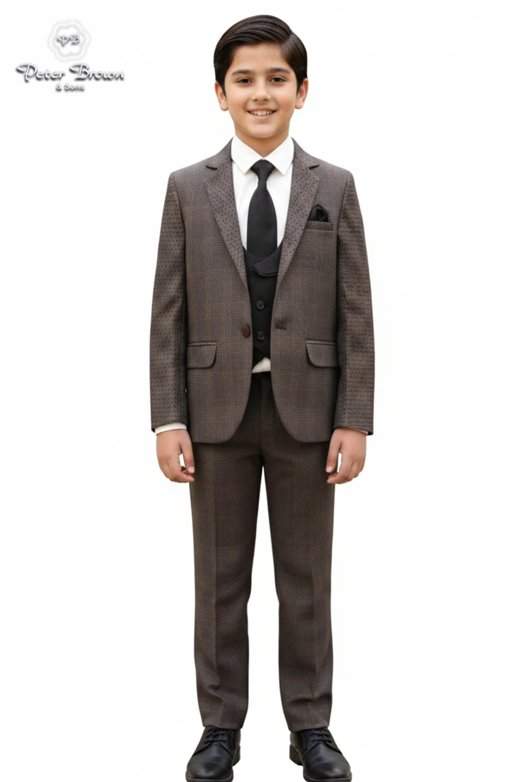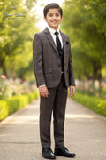 Premium Boys' 5-Piece Formal Suit – Textured Charcoal Check