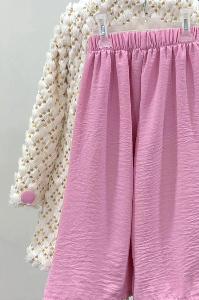Mix & Match: Each piece is designed to be versatile. The coat can be styled with denim for a weekend trip, while the pink set can be worn separately during the spring.
